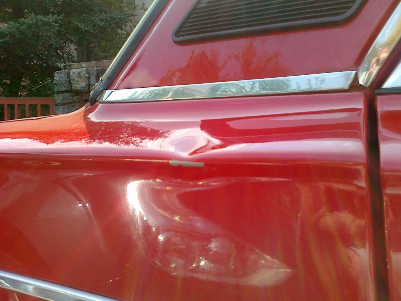 Ano, díra byla provedena do nejtvrdšího místa karoserie, přímo pod C-sloupek, a ještě do hrany. Dokonce se odlomil lak. Alespoň bylo vidět, jak je pod tím krásná zdravá ocel.