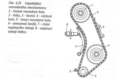 Vačková hřídel se otáčí polovičními otáčkami než kliková hřídel a ve ventilovém mechanismu vznikají značné setrvačné síly. Pokud není řetěz napnut (nepravidelná či žádná údržba) - dochází ke zvýšenému opotřebení ozubených kol a k "vytažení" řetězu. Motor se stává hlučnějším a rozvodovým dílům se zkracuje životnost, mění se časování, motor ztrácí výkon ... . Při výměně (měníme všechny díly: řetěz, 2x velké ozubené kolo, 1x malé ozubené kolo, dle opotřebení tlumič kmitů a napínací čelist) postupujeme takto: