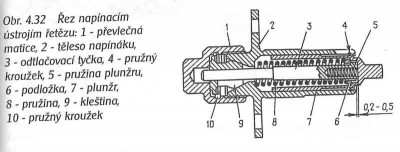 9. vyšroubujeme dorazový šroub řetězu umístěný u hnacího rozvodového kola (viz. pol. 6 a 5 na obr. Rozvodovy_mechanismus.jpg)