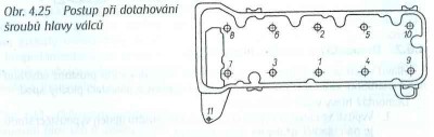 K bodu 10: všechny šrouby napřed "odrazíme" - povolíme o max. 1/6 otáčky, aby se nám hlava nezkroutila a některý ze šroubů se "nezakousl".