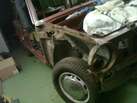 Pri zbežnej obhliadke je podlaha OK, ale predná časť, roh na vodičovej strane je totálne na šrot, chytená je aj prepážka. Zdá sa, že zatekalo okolo okna a celá tá strana od rohu okna dole bude úplne zhnitá. Rovnako aj vnútorný prah. Výstuha prahu od blatníka niekam zmizla. Minimálne jedna kapsa pred zadným blatníkom sa bude tiež operovať. Strana spolujazca je na tom o čosi lepšie, pravda sa ale ukáže, až keď odstránim gumoasfalt čo tam svojho času otec dal.