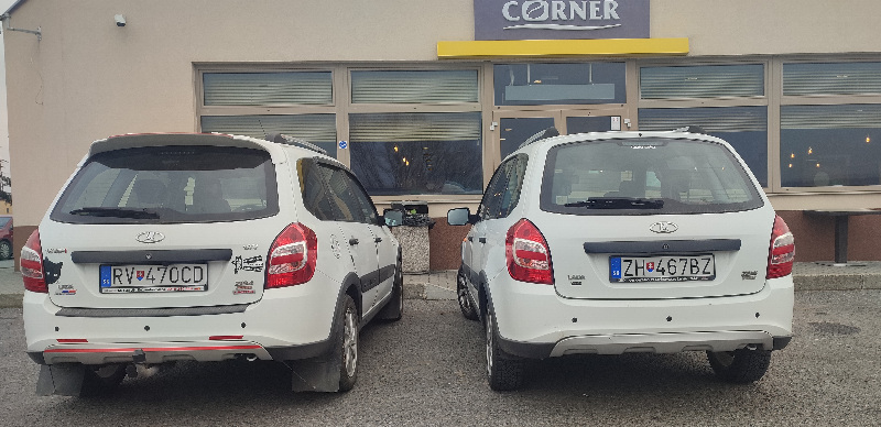 Síce sú Veľkonočné sviatky ale vonku je už týždeň ako na Vianoce, farby znovu zle schnú a preto, že vykurovanie garáže ide do peňazí, som získal čas aby som sa po veľmi dlhej dobe mohol venovať aj tomuto fórum. Od 7.3.2023 máme v rodine ďalší, už v poradí tretí automobilový LADA prírastok, no a kto iný ako moja dcéra mi zasa zabezpečila robotu s LADA KALINA CROSS LUX r.v. 2016. Trochu som sa pri prehliadke Kaliny u predávajúceho zdráhal isť do toho, lebo tak zanedbané auto som dlho nevidel a pri porovnaní s naši Kalčou, som si predstavil čo ma čaká. Takých to skvostou je na Slovensku málo a to, že je tiež vo výbave LUX a predajca dosť znížil cenu, išiel som do toho. Má najetých už 145 000km a zabezpečoval sa len pravidelný servis a prehliadky na zabezpečenie bezpečnej prevádzky vozidla a nič viac. Na karosérii sa zapísalo celoročné parkovanie vonku a počet najetých km v okolí Zvolena a na pravých dverách aj neodborná servisná oprava po ich odretí na parkovisku, tak že je čo dávať do poriadku. Projekt „Renovácia LADA 2112 1.5 GLI 16V - Серебряный шершень“ sa tak musí na chvíľku odložiť. Predajca si svoju starú ŠPZ - ku nechcel nechať, tak sa to využilo a na vozidle zostala, lebo ŠPZ nášho okresu RV už neboli a tak odpornú novú ŠPZ - ku AA-...... s dominantným totalitným znakom ríše EU, by som skrátka nemohol mať.