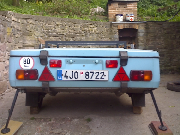 Mám v plánu osadit místo malé boční odrazky boční bliknu z hranatce. Jednu dobrou jsem vybral z mrtvoly a po přiložení na vozík to vypadá velmi dobře, tedy lépe než ty český.