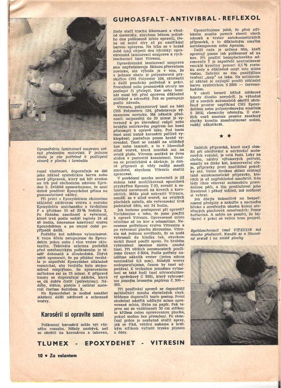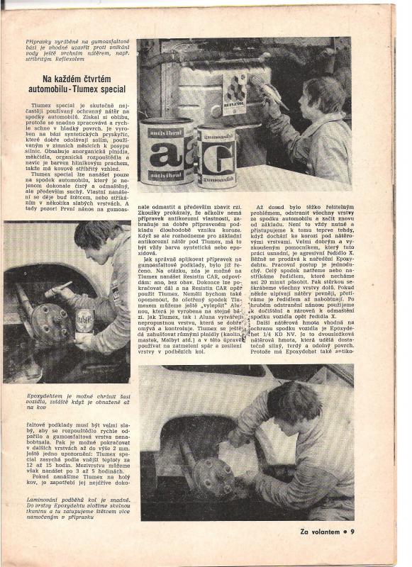 Použití petroleje do Tlumexu plast na dutiny byl objev, který se nemohl otisknout. Snížila by se obnova vozového parku, který se ještě teprve rozšiřoval. Použití petroleje do Tlumexu plast na dutin bylo objeveno zcela jistě před rokem 1980. Já se k receptu dostal více než o 10 let později. Mám ho od důvěrného zdroje (dotyčný již dlouho nežije). Později jsem našel petrolej i na účtence v roce 1996 ze servisu na nástřik dutin, jak jsem tady psal. To je jediné použití Tlumexu plast s petrolejem, kde je významnější přínos této směsi, než větší škoda samotného asfaltu. Jak je vidět, recept se začal postupně šířit mezi lidmi (ale poměrně málo) a stal se tak trochu veřejným tajemstvím. Černé na bílém doložit nelze. Leda, že by se někdo dostal k desítky let starým dokladům v UVMV. Nejspíš dnes ani neexistují, protože UVMV již dlouhá léta neprovádí výzkum, ale jen certifikaci a zkušebnictví. UVMV má spoustu let německého vlastníka, který utlumil původní činnosti. Někteří recept neznali a doteď tomuto receptu nevěří a jsou z něj rozčarovaní asi jako já z vosků do dutin a podobných přípravků. Jak vidím každý si stejně budeme používat to svoje "nej"....