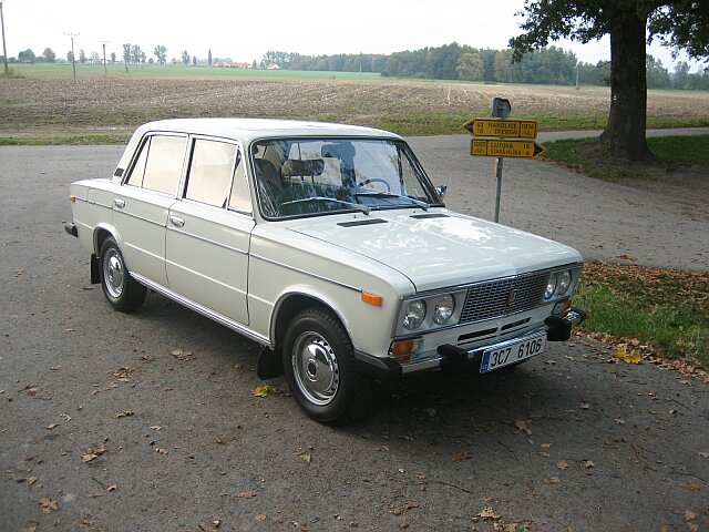 Údaje k autu: VAZ 2106, 1979, bílé barvy, 38000 km, původní stav i pneu ojeté více než z poloviny (ty jsem ale již vyměnil, neboť auto skákalo a plavalo), béžový nádherný interiér, původní modré potahy jsem sundal). Vše jak nové.