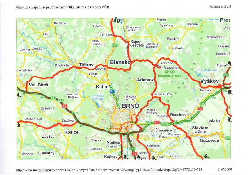 Abych Vám usnadnil bloudění (obzvláště těm, kteří jedou poprvé) vyznačil jsem Vám v mapě (snad nejjednodušší, neříkám nejlepší) příjezdové cesty do Jedovnice. Něco málo k jednotlivým trasám (na krajích obrázku jsou pořadová čísla):