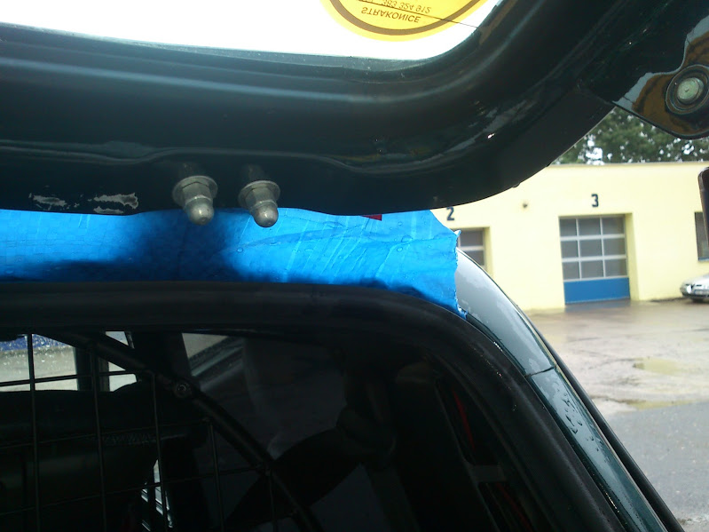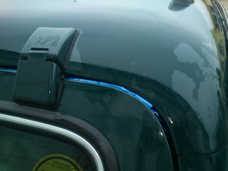 Já se zatékáním do nivy vepředu i vzadu zabývám již delší dobu. Vepředu u řidiče mi zatékalo otvorem pro příchytku gumových hadic brzd a spojky. Pokud auto stálo čumákem nahoru, stála tam voda, která vesele protékala až na podlahu. U spolujezdce mi zase zatékalo škvírou u kaslíku baterie. Musel jsem demontovat interiér, asfalto-filcové izolační hmoty na podlaze byly totálně nacucané vodou. I vyndané to schlo asi 14 dnů. Vzadu mi pro změnu zatékalo oknem. Zakoupil jsem dva výrobky od firmy Henkel - Teroson Terodicht Elastik černý na okna a Teroson Terostat 9100 bílý na karoserii. Ten černý jsem nacpal zatím zvenku pod odchlípnuté gumové těsnění. Bílým karosářským tmelem jsem utěsnil škvíry v karosérii.