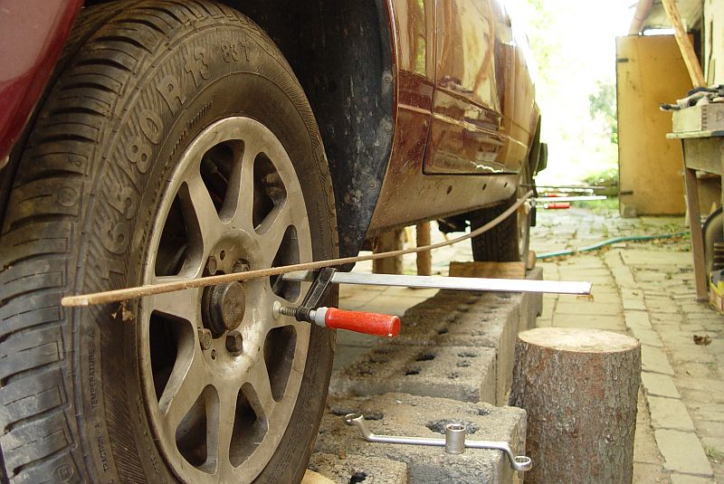 Borec na to hleděl a že to nepude. Tak říkám pude, navěšte na to ty cajky, hlavně to změřte a zbytek si udělám. Furt cosik mlel o muzeu a jestli to jako zakonzervuju jako veterána a furt, to nepude, to nepude ... ale šak co se bojíš, podej 19 klíč a šupleru a jdem na to. Naměřil úhly, tužka a papír, spočítal jsem podložky, borec se jenom usmíval a kroutil hlavou. Povol to tam a tadyk, nastrkej to tam ... změřili jsme to podruhé, úhly seděly +- 10''. Borcovi spadla čelist a blekotá "za to by vám Putin dal medaili". Udělala se sbíhavost a autí lítá zase jak za mlada. Když jsem odjížděl tak říkám že aspoň může v hospodě machrovat, že udělal geometrii na žigula. Tak že prý jo, že to mu nikdo neuvěří