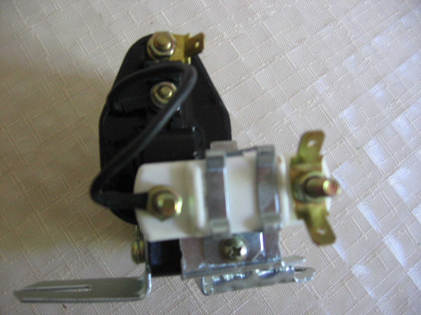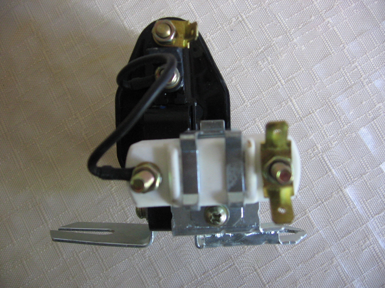 Na téhle cívce není nic označeno. Nevím jak to zapojit. Asi bych to zkusil černý šroubek na + od zapalování a druhý bílý s vidličkou na kladívko rozdělovače, ale vůbec si nejsem jistý.
