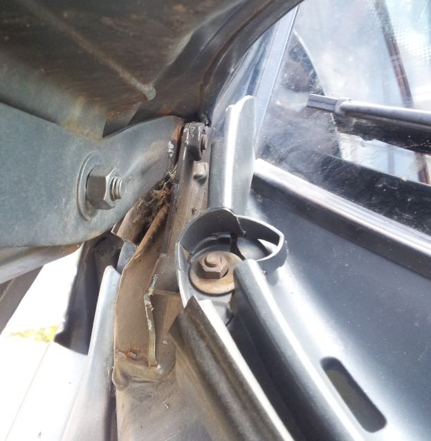 Tak se mi ukroutil čep u pantu haubny. Odjistil jsem jí a nešla otevřít, myslel jsem, ze se jen vzpříčil ten háček otevírání. Tak jsem ho lehce odháknul pomocí šroubováku a hops... celá kapota poposkočila (a lehce poškrábala dveře) a koukám, že u jednoho pantu je urvaná. Stalo se to přesně na čarodějnice... holt Lada Jaga.