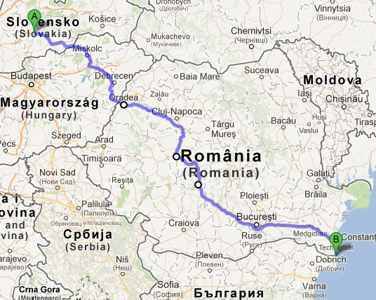 Najdôležitešie je za "čerstva" sa dostať čo najrýchlejšie k najvzdialenejšiemu bodu - Mangalia - cca 1300km.
