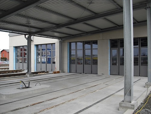 Nové depo a příjezdová hala v Gmündu.
