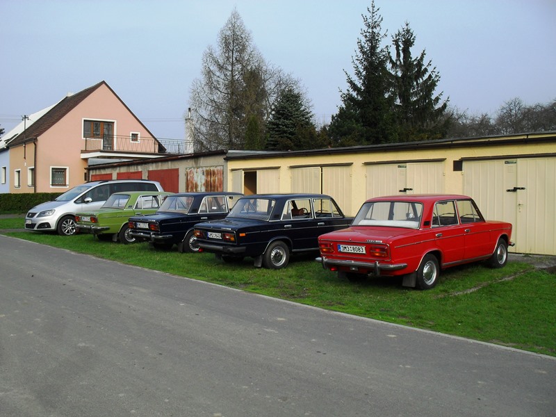 Žigulíci: VAZ 2101 r.1971, VAZ 2103 r.1974, VAZ 2170 r.2012