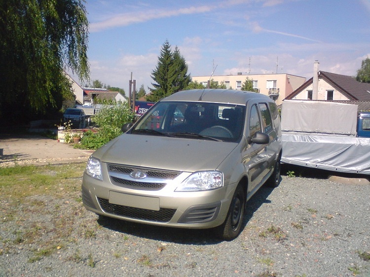 Zazpívám...tenhle kousek půjde do Německa, ale auto už je u nás schválené. Cena zatím není stanovena, to se čeká ještě na nějaký podklady. Měl jsem jen okamžik na okouknutí auta, narychlo jsem kouknul dovnitř, prostě vylepšenej Logan - jo palubka mi přijde u Largusu hezčí. Okna mají samozřejmě značku výrobce БОР stejně jako u žigulíků. Maska mi přijde u Largusu hezčí a teď po shlédnutí naživo se mi to potvrdilo. :)