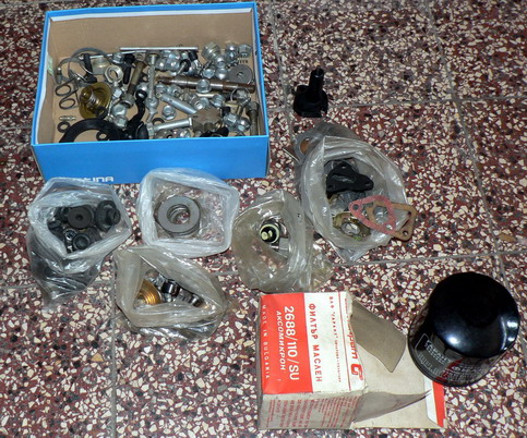 Znovu prodávám (a pouze na Aukru!) 6 krabic dílů na 2101-2102 a zřejmě i pár dílů na Škodovky: silentbloky, čepy, 3 nové spojkové válce, šrouby, matice, pružiny, hadice, trubičky brzd, lanovody (asi ne z Lady), ložiska, atd.... a přední nárazník 2101. Nárazník má drobnou deformaci v horní části. Chrom je OK.
