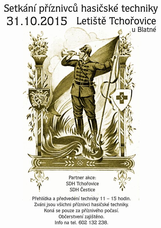 dovoluji si Vás upozornit na Sraz příznivců hasičské techniky který se koná 31.10. na letišti ve Tchořovicích. Pokud se ve vašem okruhu známých či přátel nachází milovník staré techniky, tak děkujeme za přeposlání této pozvánky.