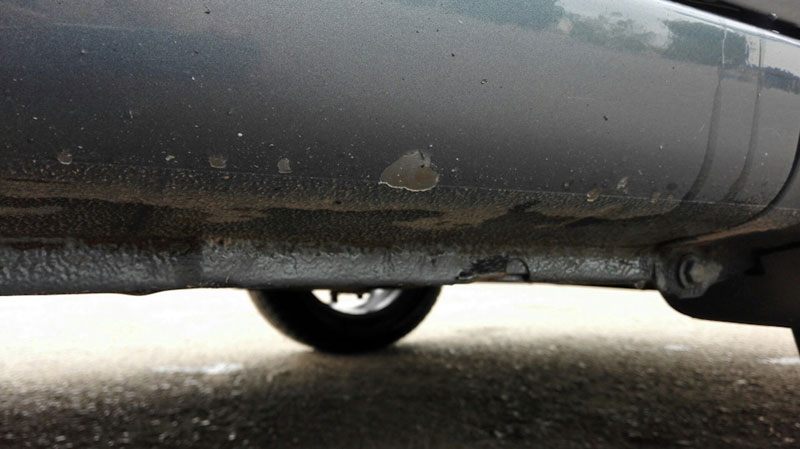 Granta Liftback, predná časť podbehov, ako sami majitelia priznávajú kvalita ciest tiež prispieva k tomu aby sa na obité predné časti podbehov prilepila hrdza. Dodatočne a opakovane ešte pred koncom záruky si ich dávajú prestriekavať a ošetriť.