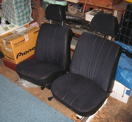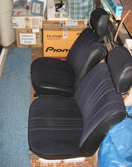 Začínám pěknými semišovými sedačkami z luxusnějšího modelu 21053. Fotky jsou s bleskem, tudíž přesvětlené, v reálu to vypadá lépe. Barva je něco mezi hodně tmavou modrou a černou, zadní strana černá. Semišové jsou rovněž opěrky. Obě sedačky za 500,-