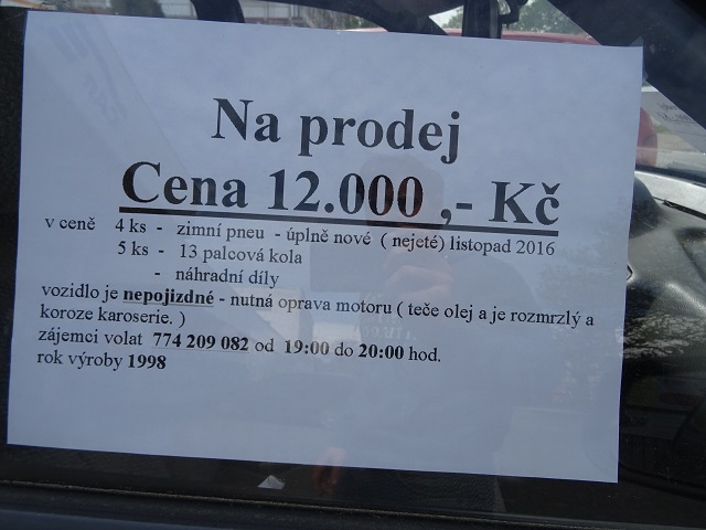 ja: Vaz 21044i (1996, 1.7i, 5q), Vaz 21044i (1997, 1.7i, 5q), Vaz 2104 (1986, 1.3, 4q) bez SPZ, Vaz 2102 (1980, 1.2, 4q) bez SPZ, Škoda Forman (1993, 1.3) bez STK, Škoda Felicia Mystery (2000, 1.3 LPG)