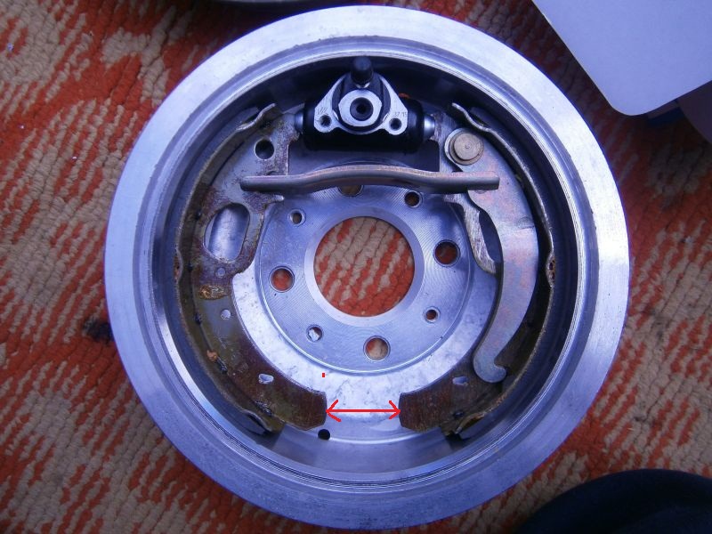 Pre zaujímavosť, vzdialenosť medzi opornými bodmi na štíte je 37mm. Po vložení všetkých vnútorností do bubna bola medzera medzi spodkami čeľustí 41mm. Ak by som chcel nechať starú zostavu, tak rozperu by som upravil tak, aby sa táto vzdialenost zmenšila na 37mm + nejaké drobné ako vôľa. S novým bubnom a čeľusťami je vzdialenosť 38mm.