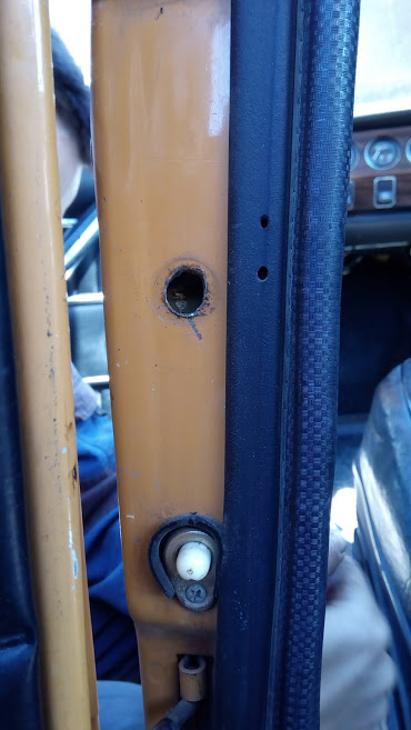 Dnes přidám dvě fotky toho, jak někteří lidé nepřemýšlejí při nástřiku dutin vozidla. Místo toho aby demontovali spínač osvětlení interieru či dveřní světýlko, raději vedle vyvrtají díru ....
