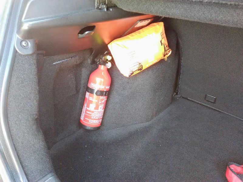 1., umiestnil som do kufra hasiaci pristroj. Vybral som si lavy priestor za blatnikom. Zvazoval som aj Stanovu alternativu s vyuzitim priestorov za otvormi so suchym zipsom, ale ked som tam strcil ruku, tak som zistil, ze su poriadne vystriekane a zakonzervovane a nechcel som narusovat konzervaciu, ani spinit vkladane veci.