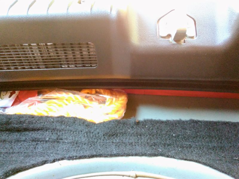 2., Pri spoznavani zakuti auticka som objavil kufri, pod jeho spodnou nakladacou hranou priestor, do ktoreho sa mi uplne v pohode zmestil trojuholnik a tazne lano.