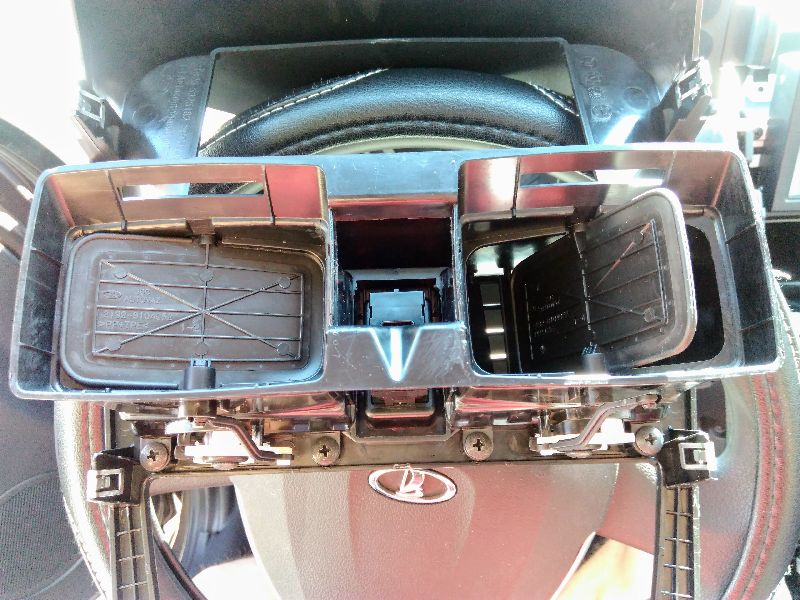 Preto som patral, ci klapka prepinania teply-studeny dosahuje koncove polohy, ci nie je nejaka chyba v serve alebo mechanizme. Aby som sa k nemu dostal, musel som vytiahnut dekel zo spodnej a lavej casti pod volantom. Je tam nacvaknuty na pruznych zasuvacich cudlikoch a ide vytiahnut celkom v pohode. Pre uplne odlozenie krytu som este musel odpojit konektor z tlacitka otvarania kufra.