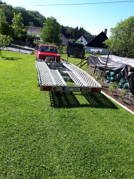 Lada mi o víkendu dělala radost, nemohl jsem se jí nabažit a když už nebyla ve stodůlce u rodičů, ale u mě u domu ( těch 300 m bývá někdy daleko, protože skoro vždy vyfasuju nějakou práci), tak jsem ji zapřáhl do práce - potřeboval jsem po zahradě potahat a přemístit vleky - potřeba sekat trávu a nástřik podlahy karavanu, tak jsem si hrál. Plaťák bych mohl tahat i ofiko (samo, že né moc naložený), ale překvapilo mě, jak lehce jsem hýbal karavanem ( má asi 1100kg), ten bych si chtěl vyzkoušet na silnici, pravda, dost si sedla na zadek, přeci jen to tlačí 100kg na kouli. A málem jsem nezapojil, žehlička má atypický tvar a vadil nárazník.
