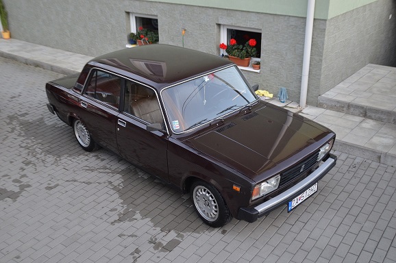 keďže som tu nový rád by som predstavil ďalšieho člena na fóre. Je to hnedá Lada 2105 s remeňovou 1.3. vyrobená v roku 1986. Auto som kúpil viac menej po dedovi ktorý ho chcel dať do šrotu a kupoval ho ako nové. Pri obhliadke bol problém s AC pumpou, a s malým výkonom. Prejsť Kľak bolo možné len na jednotke :) auto skackalo a dusilo sa po pridaní plynu, cez 80km/h som ho nedostal vôbec. Mám ho zatiaľ 1,5 mesiaca no stihol som na ňom: zrepasovať a nastaviť karburátor, nastaviť ramienko, nový palec a veko rozdelovača, vymeniť tlmiče, sviečky, olej s filtrom (filter tam bol ešte československý sandrik :oops: ), vymeniť silentbloky stabilizátora za polyuretánové, decentne ho znížiť, navoskovať a obuť elektróny z BMW E30. Motor bol dosť lenivý ale stačilo na ňom jazdiť viac svižne a predbral sa k životu. Tachometrových 150 nie je problém, viac som zatiaľ neskúšal. Po tomto všetkom ho najviac trápi hrdza, zatuhnuté predné brzdové piestiky (už je to lepšie ako na začiatku) ,zrejme klepajúce ventily a zanedbané nápravy. Na zadok sa chystajú znovu polyuretány, avšak chlapík z ladadiely.eu mi akosi poslal len zbytky a vo výsledku sa sada skladá z 9 veľkých a 1 malého silentbloku, takže čakám na výmenu tovaru, ak vôbec nastane :cry: .