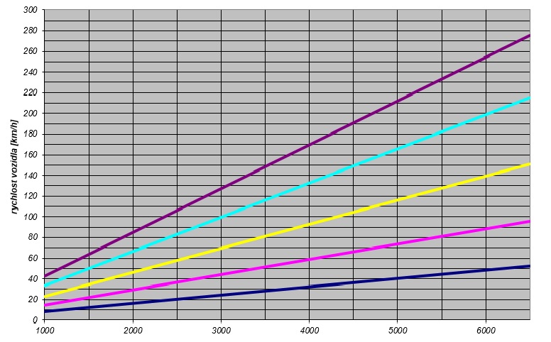 Takhle by to vypadalo v praxi. Toto jsou čtyři základní grafy charakteristik převodovky jako kombinace dvou typů převodů a dvou rozvodovek. Samozřejmě možností je pak ještě další celá řada - dají se vzájemně kombinovat i jednotlivé rychlostní stupně, ale to už je spíš tak pro účely rally a závodů do vrchu :-).