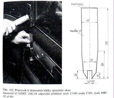 Na kličku okna je nejlepší takový plechový přípravek. Ten asi nemáš, tak třeba hubeným šroubovákem vydolovat pojistnou pružinu - nachází se na ose. V osičce je prostě drážka, kterou obepíná pružina ve tvaru baculatého V.tapalz píše:Zdravím, měl bych dotaz, jak sundat tapecirung na Lada Niva 1986? Jde mi o kličku okna a otevírání dveří a koženkovou desku. Díky za odpovědi.