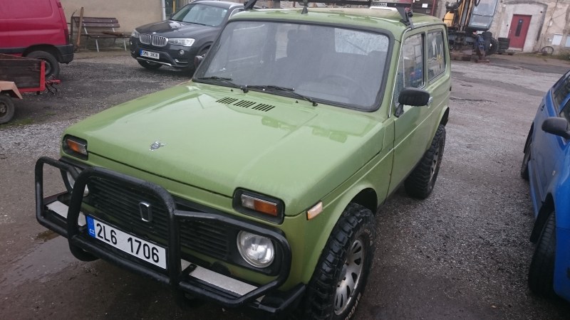 Teď jsem měl nivu s pneu úplně předpotopními, vzadu jemný hluboký vzor typu zmije, vpředu sjetých terénních pneu 175/80 r16 cca 5mm a jelo to všude, bahno, mokrá tráva, pole, les...