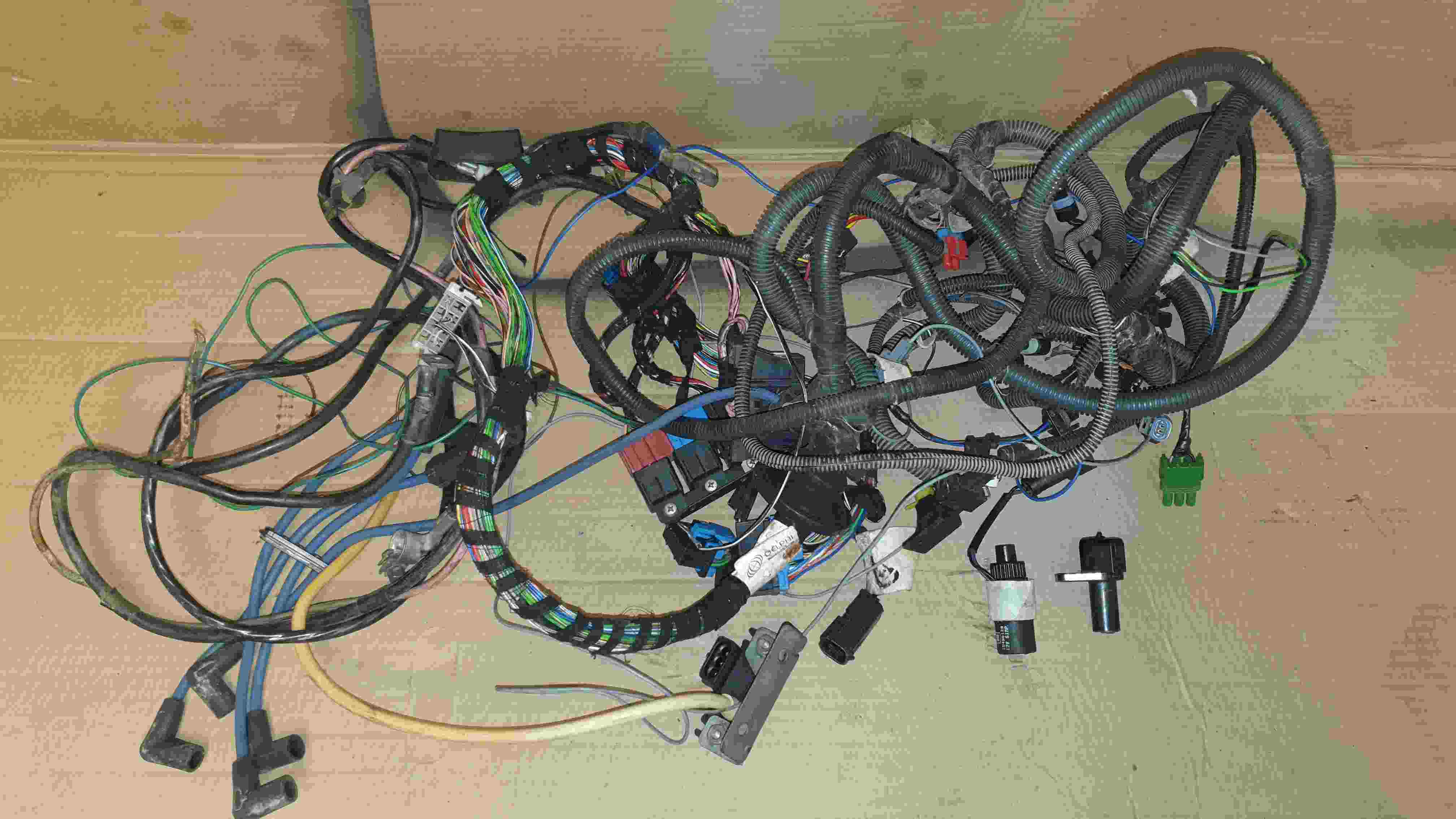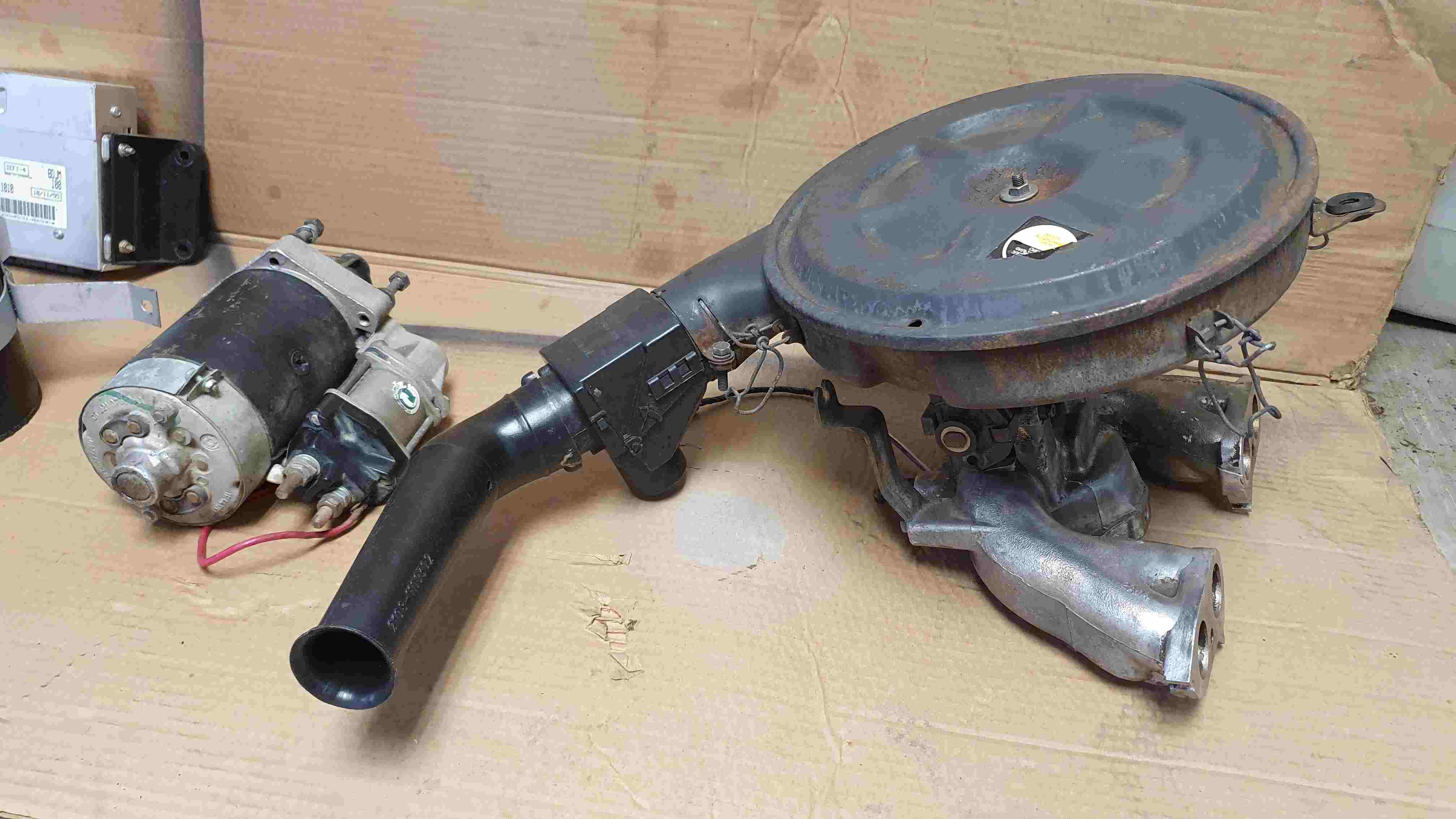 Ohřívač sacího potrubí, snímač teploty vzduchu, snímač absolutního tlaku, snímač teploty chladící kapaliny, snímač rychlosti, regulátor předstihu, lambda sonda, adsorbér, řídící jednotka, zapalovací modul, snímač klikového hřídele, relé, filtr box se vstřikováním a sacími svody, výfukové svody, řídící jednotka, kabely ke svíčkám, startér, alternátor. K tomu veškerá kabeláž pro připojení. Jednoduše to co je vidět na fotkách a potřeba k funkčnosti motoru.