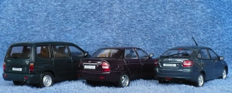 Dnes mi doma přistály modely 1:43 skoro mojí Priory, Granty a Naděždy - s tou jsem ani moc nepočítal, že se objeví model :) Jen škoda, že nevybrali původní verzi s podélnýmy 2 světly, ta se mi líbí víc. Tak už mám základní modelovou řadu VAZu kompletní :D