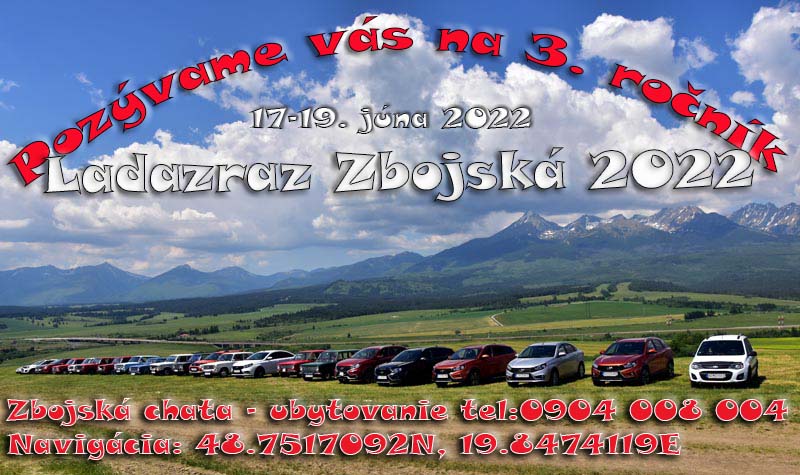 Dovoľujem si vás pozvať na tretí ročník Ladazrazu Zbojská. Kto chce prísť, treba si rezervovať ubytovanie. Strava bude zabezpečená na chate. Program: piatok - stretnutie, ubytovanie, obzeranie VAZidiel. Sobota: raňajky, okružná jazda po miestnych zaujímavostiach + nejaký ten horský priechod, opekačka, obzeranie VAZidiel, voľná zábava. Nedeľa: voľná zábava a pomalý rozchod.
