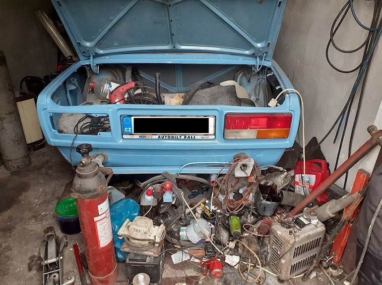 Pánové, řada dalších let uplynula, já neměl na řešení čas a tak vše nechal být, ovšem už mne to nebaví. Dotyčný auto dokončí už těžko, leží v binci v garáži a nic z něj není, raději bych, aby přinášelo radost někomu jinému a já dostal alespoň peníze, když ne potešení z jízdy. Na autě jsou vyměněné blatníky, vyvařené prahy a podlahy, zkrátka vyvařené je(i když nemohu vyloučit, že dotyčný někde nějakou dírku vynechal), krom střechy lak, střecha potřebuje dokytovat a nalakovat, auto složit a oživit(jak tedy vypadá čalounění vzhledem k uložení ani nechci vědět).