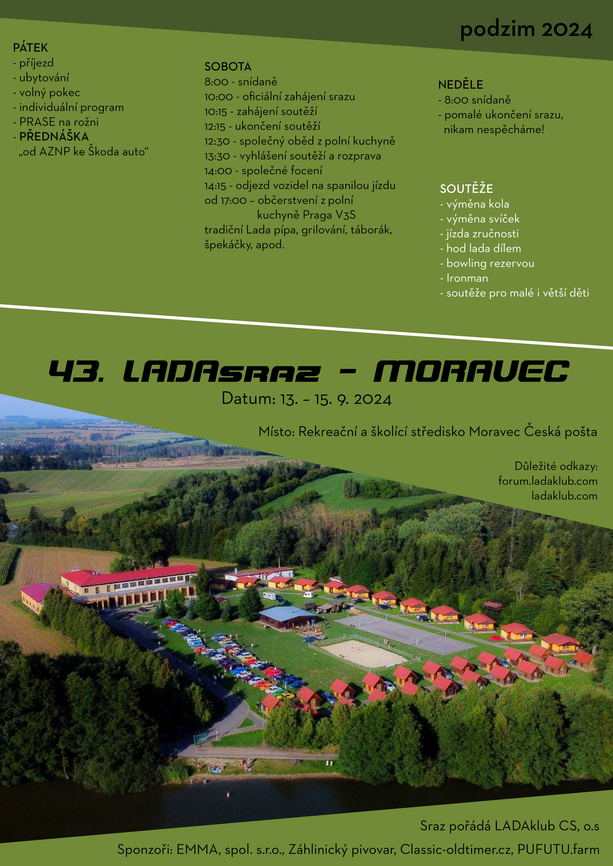 Vašátor píše: stř zář 11, 2024 17:09 Milí Ladaklubáci a příznivci vozidel Lada. Zaznamenávám vaše znepokojení nad hlášenou předpovědí počasí. Ano, vypadá to, že nám letos počasí přát nebude. Bude zima, déšť i vítr. Bude to úplně jiný sraz, než na jaký jsme byli doposud zvyklí. Na druhou stranu, bude to něco, co jsme možná ještě nezažili a není důvod, proč si to spolu i tak pořádně neužít. My organizátoři jsme si hlášené nepřízni počasí vědomi. Nespíme na vavřínech, makáme, voláme, zařizujeme, vymýšlíme. I tak je nám ale jasné, že dlouho plánovaný koncept srazu během dvou dnů překopat nebude jednoduché. Plány jsou, do jaké míry se nám to podaří, zhodnotíte až vy, účastníci srazu. Nebojte se počasí a přijeďte!