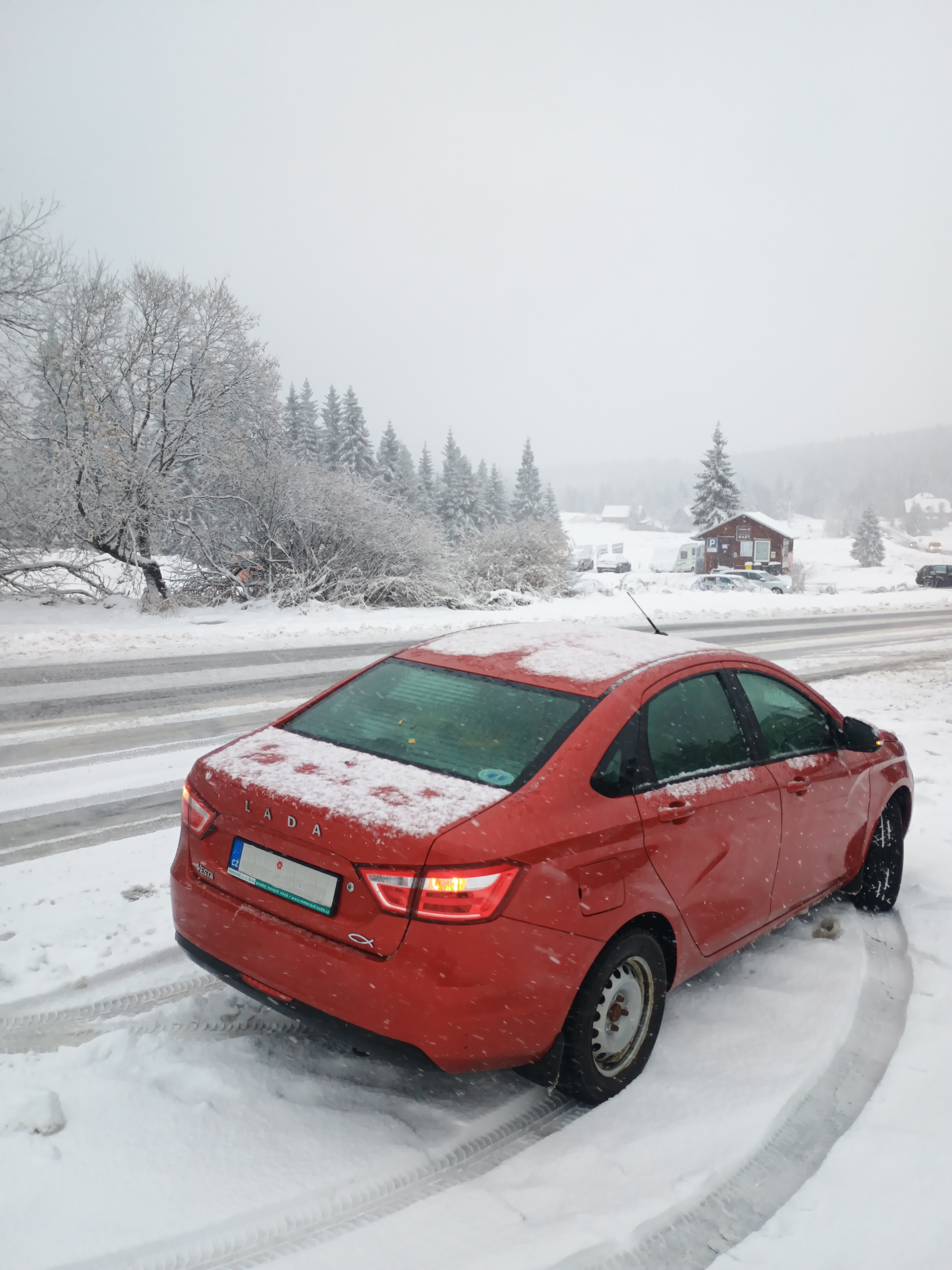 Tak aby to tu neumřelo, malá reklama na Vestu a pneuservis pana Halouna v Ohrazenicích: jak říká reklama na Vestu "Co je pro ostatní příliš, pro Vestu je příložitost se projevit". Snímek z 28.10. ukazuje předohrab Vestu na zimákách jak zdolala Jakušycký průsmyk, ve kterém uvízl - klasicky - kamion na letních a své piruety předváděli (nejspíš na letňácích) majitelé Superbů a Kodiaqů ...