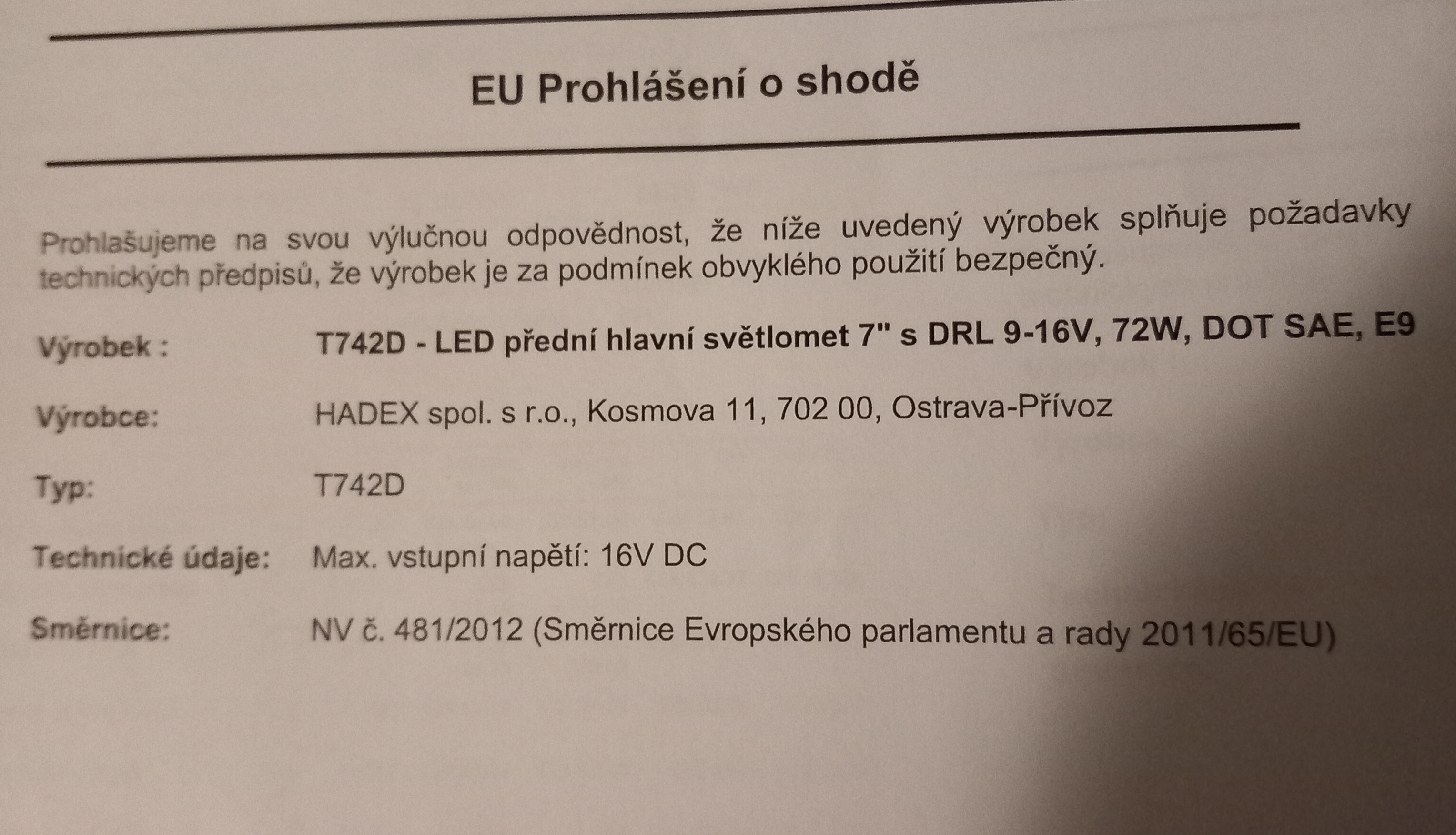 Co jsem pročítal různá fóra, tak bez čísla homologace, která by se dala reálně dohledat,to nic neznamená. Ale mohu se mýlit. Např. tady