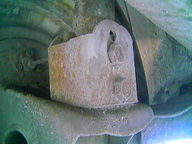 Takhle vypadají ty kostky. Povšiměte si té koroze všude kolem. Kostky jsem tam dával fungl nové na podzim 2004. Rovněž disky ještě nedávno svítily jako nové atd. Tohle auto je na korozi nemocný... :(