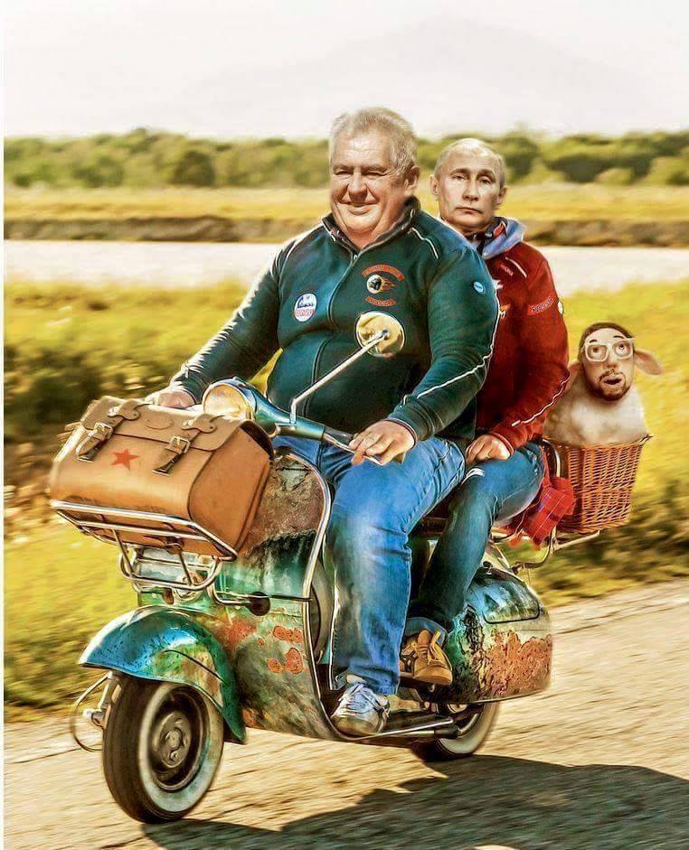 Z Ameriky na Rusko letí jaderná raketa, opačným směrem z Ruska na Ameriku letí druhá. V polovině cesty se rakety potkají a zastaví se na kus řeči. Ruská raketa vytáhne balalajku, butylku s vodkou a pirožky. Debatují, připijí si na setkání, na vítězství, potom na světový mír... Po chvíli americká raketa povídá: "Už cítím, že mám v hlavici, nedoletím do cíle..." Ruská raketa ji přátelsky obejme a nabídne se: "Pojď, půjdeme, dovedu tě domů..."