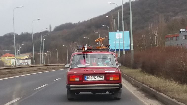 Dneska jsme Delfína vytáhli na projížďku a cestou potkali německou kolegyni s kterou jeli chvilku spanilku :)