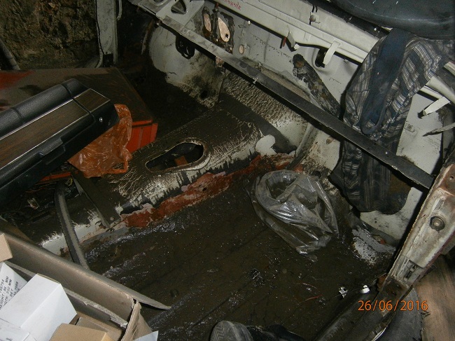 Tak máme s oběma vozy za sebou další akci, tentokrát to byla sobotní akce „25.výročí odchodu sovětských vojsk z Milovic”. Počasí ze začátku bylo možná až moc dobrý, ale ke konci akce přišla průtrž mračen! To jsme ještě nevěděli co nás čeká až přijedeme domů. Naštěstí že jsem jeli s oběma vazy, protože se během akce, doma protrhl rybník a zaplavil celý dvůr! Auta co tam stála tak byla do půlky pod vodou, takže všechno zničený, jak interiéry tak motory. Po otevření garáže, jsme se dlouho nemohli vzpamatovat. Všechno rozházený, všude bahno, auto na zemi, no prostě hnus!!! Linka která ukazovala kam až byla voda byla ve výšce 75cm. Takže celý 3 dny následovalo očišťování od bahna.