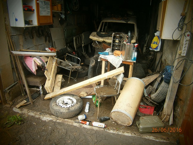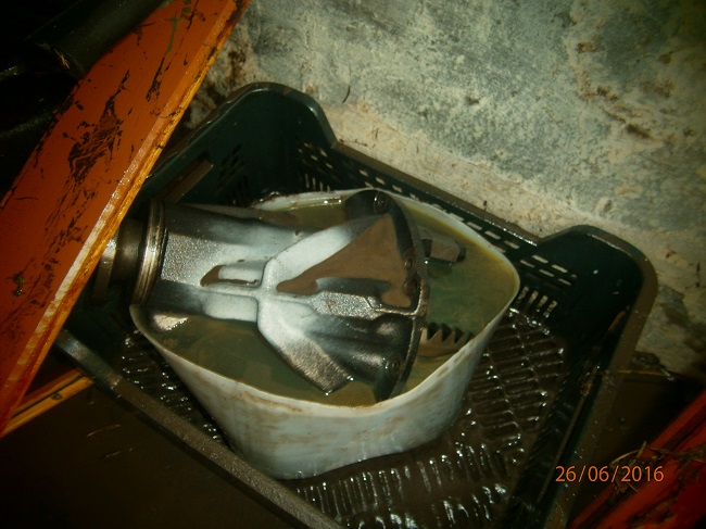 , jó pevný nervy to chtělo, naštěstí už je to docela uklizený i když zatím je to na jedný hromadě a stále to chce vysušovat. Nejvíc se bojím toho diferáku, převodovky a hlavně motoru, aby to vevnitř moc neprorezlo do hloubky, chce to prostě celý rozebrat!