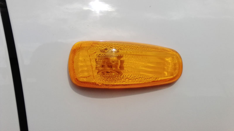 Pred umývaním auta niekedy pred víkendom som si všimol, že sa zahmlieva bočná smerovka na pravej strane, včera som sa nato lepšie prizrel a zistil som že už to pokračuje a krytka smerovky je popraskaná, dokonca je ulomený jazýček plastu čo drží smerovku v blatníku, niekto asi zo susedných vozidiel tresol dverami a trafil ju, inak si to neviem vysvetliť, nič iné poškodené nebolo, smerovku som objednal :?
