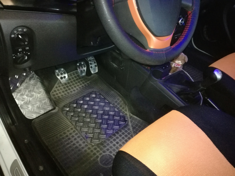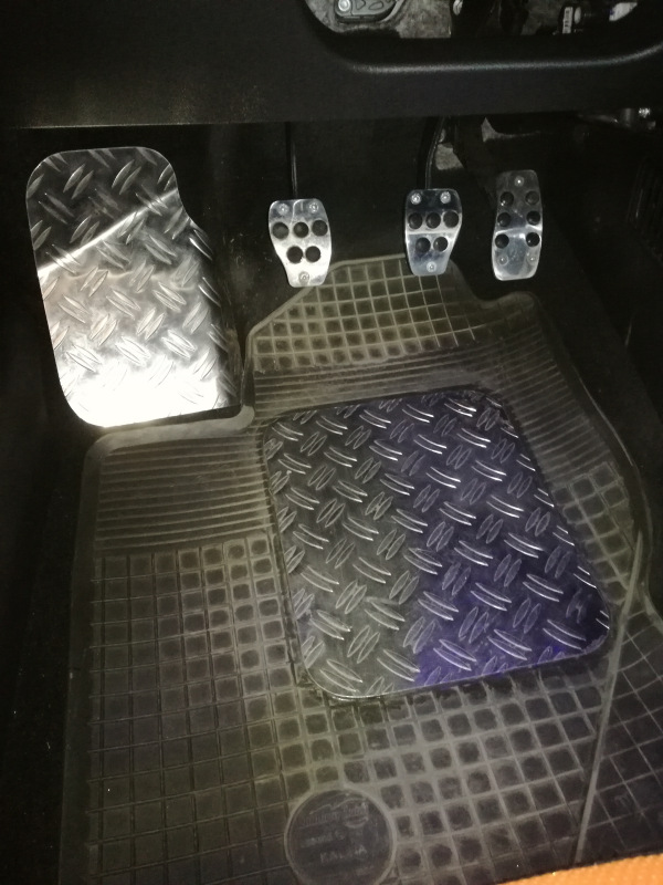 Dva roky ubehli rýchlo, na tachometru 26 600km a gumové rohože u vodiča sú tak vydraté pod pravou nohou, že som uvažoval o ich výmene. Ale to by som nesmel dostať nápad z jedného ruského tuning-obchodu a tu je výsledok kde som aj zvyšok z profilovaného hliníkového plechu využil na výrobu nožní podložky pod ľavú nohu.