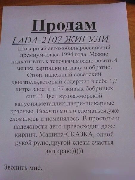 Vodis: ten inzerát nemá chybu. Hlavně poslední věta. Jednou rukou řídím, druhou si utírám slzy stěstí. :D