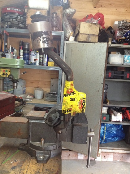 Jak píšu nad fotkou, drželo by to na dva šrouby a vlastně by to tvořilo takovou objímku okolo těhlice. Jako je to na obrázku, šroub by byl vedle těhlice a na druhé straně další... :)