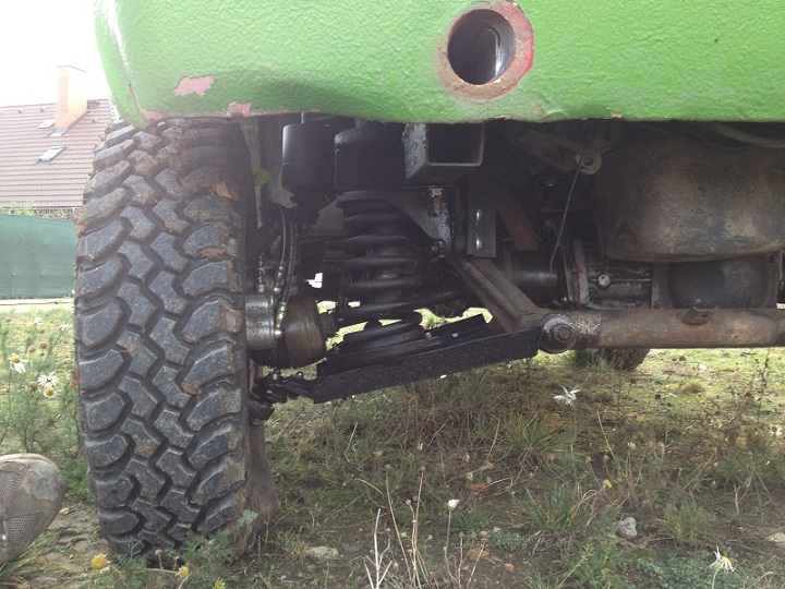 Vzadu zvednuto +10,5 cm (miska přužiny nad nápravou +5,5 cm; podložka nad pružinu 5 cm)